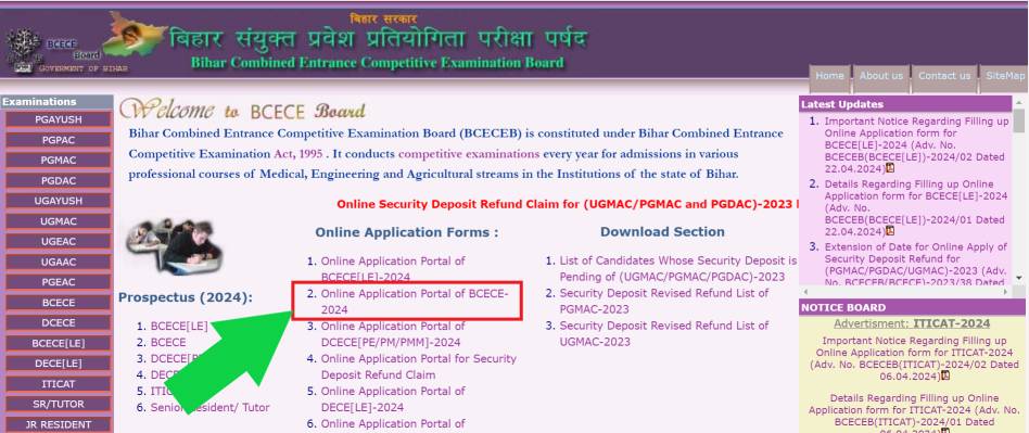 - Visit to the Official website BCECEB: bceceboard.bihar.gov.in.